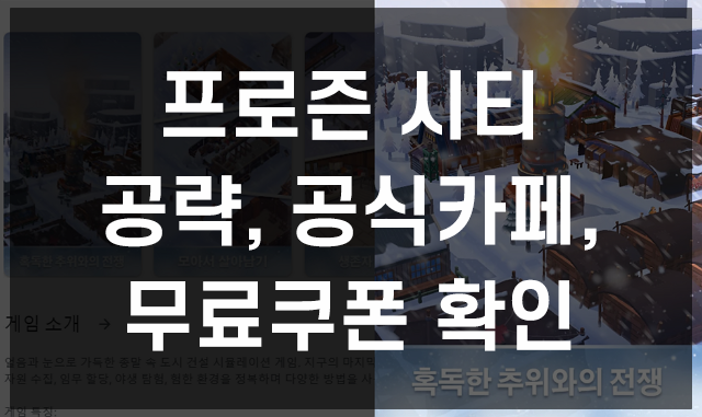 프로즌 시티 공략, 공식카페, 무료쿠폰 정보에 대해 알아보았는데요. 공식카페와 무료쿠폰은 없는 것으로 확인되었습니다.